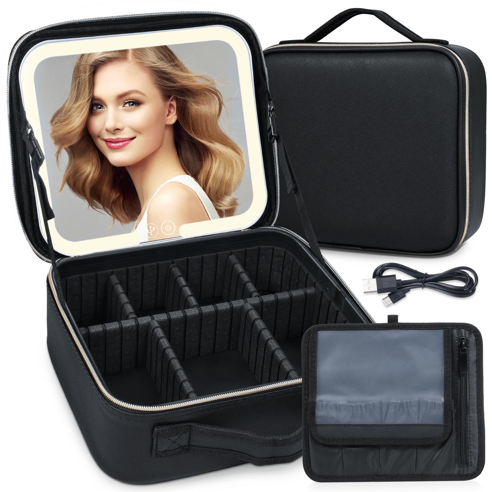 Косметичка дорожная с зеркалом и подсветкой представляет собой вместительный органайзер для разной косметики. Имеет несколько отделений, есть еще и полотно для размещения кисточек. Главная особенность косметички - она поставляется вместе с зеркалом. Зеркало может использоваться отдельно. Оно поможет точно наносить макияж любой сложности, так как имеет регулируемую светодиодную подсветку. Стильный чемоданчик, возможности которого оценит любая женщина!