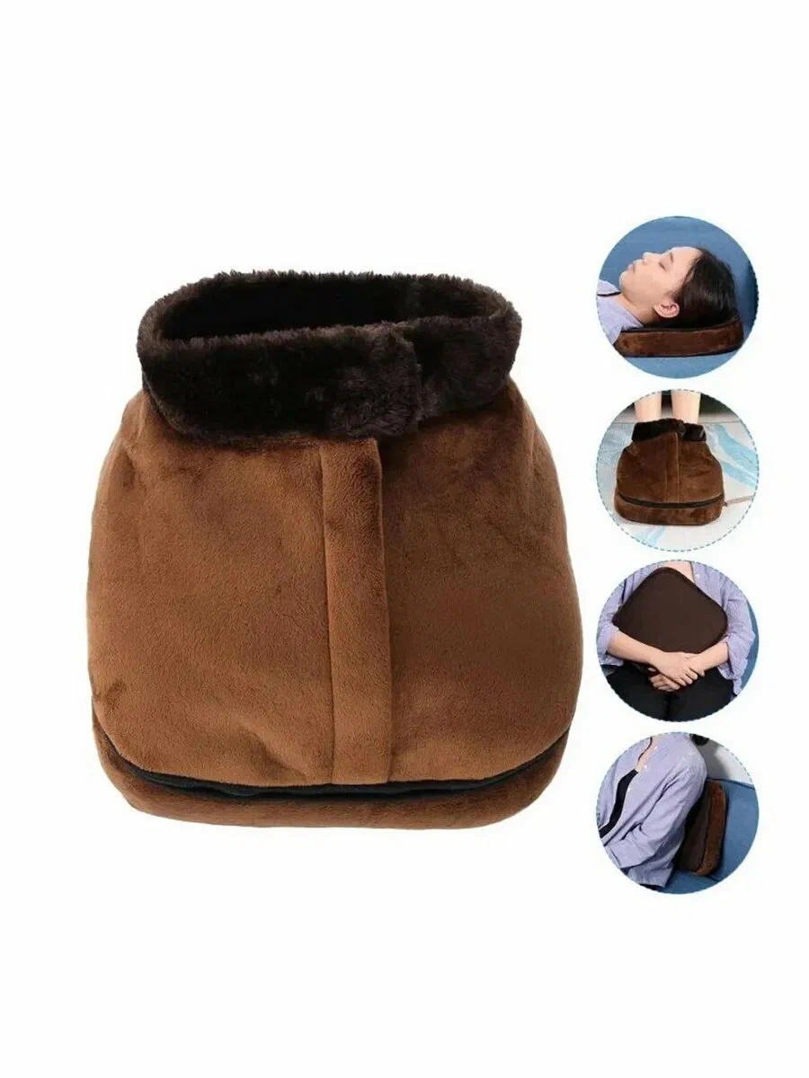 Тепловой мссажер позволит вам расслабиться и снимет усталость и напряжение тела и ног! Это одновременно и массажная подушка и грелка - то есть две функции в одном устройстве. Оно выполнено из мягкого и роскошного плюша и нагревается до 58 градусов в течение 20 минут. Тепловой массажер подходит для любого участка тела: ноги, плечи, предплечья, бедра, спина, голова, голени. Его можно использовать в качестве массажера или грелки. Эти опции можно включать и одновременно. Преимущества теплового массажера:- 2 терапии в одном устройстве — нагрев и вибрация.- Функция массажера для ног.- Функция массажной подушки.- Два режима для вибромассажа.- Возможность включать нагрев и вибрацию вместе или по отдельности.- Очень мягкий и приятный материал.- Верхнюю часть массажера можно отстегнуть, например, для стирки.- Серебряные нити, которые предотвращают появление запаха.- Автоматическое отключение.- Антискользящая поверхность. Как это работает?- В качестве грелки и массажера для ног: Разместите массажер на полу перед вашим креслом. Присядьте, расслабьтесь и поместите ноги внутрь массажера. Вы почувствуете, как тепло будет приятно согревать ваши ноги во время массажа.- В качестве грелки и массажера для тела: Отстегните верхнюю часть при помощи боковой молнии. Разместите тепловой массажер на ту часть тела, где необходимо снять боль, дискомфорт, улучшить кровообращение. Или просто используйте его для поднятия настроения и улучшения общего самочувствияПроизводительКитайКомплектацияТепловой массажер - 1 шт. Сетевой адаптер - 1 шт. Оригинальная англоязычная упаковкаТехнические характеристикиЦвет: коричневыйМатериал: плюшВес: 940 гРазмер: 31,5*16*32,5 смМощность: 14,4 ВтПитание от сетиНапряжение: 12 В3000 вибраций/минРазмер ноги: до 46