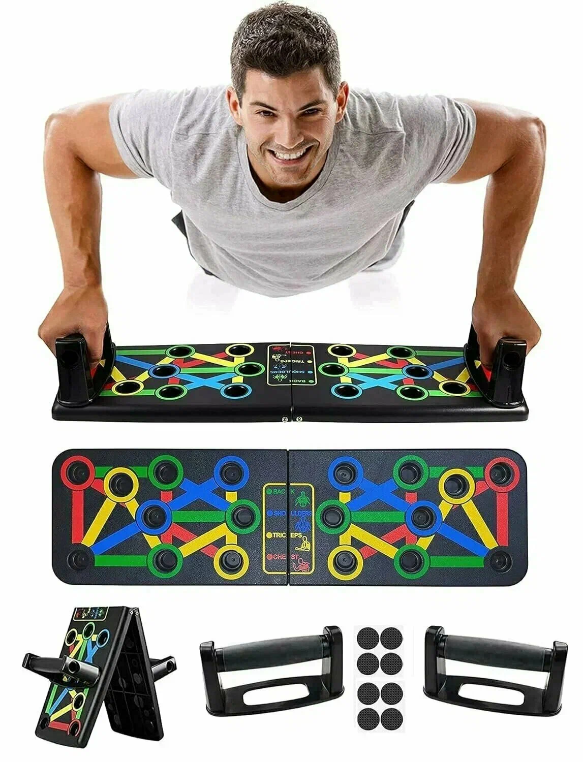 Foldable Push Up Board станет отличным тренажёром для регулярных тренировок без необходимости посещения спортзала. Подходит для укрепления мышц груди, плеч, рук, спины и корпуса.+++